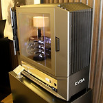 컴퓨텍스에서 케이스는 볼 만한 물건이 딱히 없어서 아쉬웠는데, eVGA에서 좀 묘한 물건이 나와서 간략하게 소개차 글을 쓴다. 이 사진을 보면 그냥 예쁘게 잘 뽑혀 나온 디자인만 보인다. 사진만 봐서는 크기가 잘 안 와닿을 수도 있는데, 4Way SLI나 4Way CrossFire에 대응되는 고성능, 대형 케이스다. eVGA는 한국에 정식으로 판매중인 브랜드가 아니다보니까 묘하게 소비자들의 마음을 자극하는 환상의 브랜드 같은 느낌이 있는데, 솔직히 말해서 선망받을 자격이 충분히 있는 좋은 회사라고 생각한다. 제조사의 커스텀 쿨러가 달린 VGA들 중 몇 안되게 볼베어링 팬을 사용하여 내구성에 투자를 했던 점도 멋지고, SR 시리즈 메인보드 같이 다른 회사들은 시도하지 않는 실험적 제품들을, 모나거나 모자라..